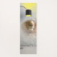 This yoga mat has a lamp and a lion pictured on it.