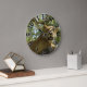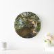 Lioness looking From Tree at her next meal walking on the ground below her on a clock. with black numbers from 1 to 12