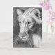 A dramatic pen and ink portrait drawing of a lioness... the art was done using cross-hatching technique. This is a statement card for the exotic wildlife lover on your list. Customize this blank card with your own sentiment.