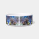 The lovely lionfish on this medium Pet Bowl is swimming in a colourful saltwater aquarium. It is an original photograph by ZoeSPEAK showing the pattern of thick and thin stripes and fancy fins on this unusual looking fish. It is a colourful photo with the tropical blue, yellow and pink of the aquarium and the salmon pink nose of the fish.