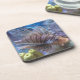 The lovely lionfish on this Coaster is swimming in a colourful saltwater aquarium. It is an original photograph by ZoeSPEAK showing the pattern of thick and thin stripes and fancy fins on this unusual looking fish. It is a colourful photo with the tropical blue, yellow and pink of the aquarium and the salmon pink nose of the fish.