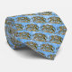 Elegant tie with vintage Lions of Judah menorah with blue Israeli tufa stone background.