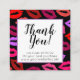 Red, purple, and bright pink pucker lip pattern thank you cards. A fun pattern featuring random colourful lips on a black background thank you card. Trendy lip pattern square thank you cards that you can edit the text. Great lip pattern thank you for your purchase business cards. Perfect for makeup artists, cosmetic boutiques, online stores, Poshmark makeup sellers, stylists, and more.