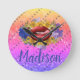 Lips Licking Custom Glitter Name Personalized Round Clock