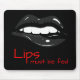 Glamour black mouse pad with black kiss lips and lips quote "lips must be fed". Use your favourite colour on the background.
