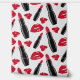 This design features lips and lipstick on a grey polka dotted pattern.
