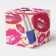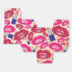 A fun and flirty design that features lipstick tubes, pink lips, and red lips on a heart background.
