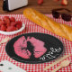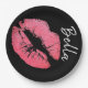 Lipstick print pink lip stain black white cute paper plate
