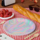 Abstract unicorn rainbow pastel colours digital fluid paint texture. Glitch, mixed media, graphic design,