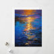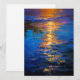Golden light shimmers across deep blue water in an expressive, impressionistic reflection of twilight.