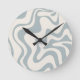 Liquid Swirl Abstract Pattern Blue-Grey and Cream Round Clock