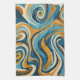 Liquid Swirl Ochre Blue Trippy Pattern Tea Towel