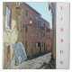 A beautiful view of a narrow street in the Alfama District in Lisbon in Portugal printed on a souvenir ceramic tile.