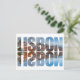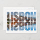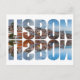 Lisbon text composed old town view with reflection postcard