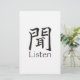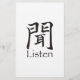 The Japanese Kanji symbol for the word "Listen" is shown in calligraphy brush strokes and looks very cool on a tshirt, bag, cap, or button. We've even added the English translation below so people get the message. The design for the character is based on a gateway with an ear inside. Pretty cool! You can change the background colour and add text too.