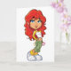 For anyone who loves listening to music this is a great design. It is off a girl with red hair who has her mp3 player on with ear buds in and she is posing while listening to some music. This listening to music design looks great on these greeting cards