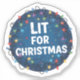 Light up the holiday season with this fun and festive Christmas design! Featuring the bold phrase “LIT FOR CHRISTMAS” in crisp white lettering, the text is wrapped in a vibrant string of multi-colored Christmas lights that add a warm, cheerful glow. Set against a deep blue background with sparkling stars and scattered dots, this circular, sticker-style design captures the magic and excitement of the season. Perfect for anyone who loves playful holiday decor, bright lights, and modern Christmas vibes.