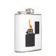 A typical open and ignitied cigarette lighter with flame in silhouette