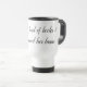 Literary travel mug with quote "she is too fond of books and it has turned her brain" by Louisa May Alcott