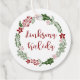 Green and red Christmas holiday wreath gift tags with the words Merry Christmas in Lithuanian: Linksmų Kalėdų.