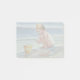 Little beachcomber girl with yellow bucket post-it notes