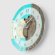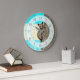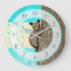 Little baby bear cub climbing a tree in teal and tan children's or baby nursery clock.