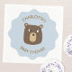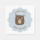 An adorable little teddy bear cub on a blue modern wavy background for a fun baby shower. Change the text to customise. Original art by Nic Squirrell.