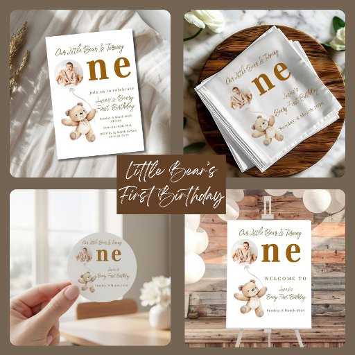 Little Bear First Birthday Photo Party Invitation