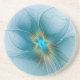 Little Beauty Modern Blue Gold Fractal Art Flower Coaster