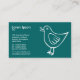 A modern business card with an original cute little bird motif. Suitable for a variety of businesses. Ready to be customised. The company details are on the front with name and contact details on the reverse side, background colours are customisable.