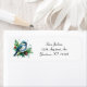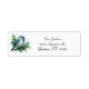 A watercolor and splatter paint image of a cute, little bird perched on an evergreen branch with red berries creates a charming holiday address label. Perfect for anyone who loves birds and nature.