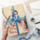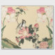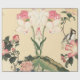 LITTLE BIRD WITH PINK ROSES AND LOTUS FLOWERS WRAPPING PAPER