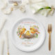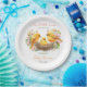 Little birdie hatching soon spring baby shower template plates personalised baby shower tableware, pair of cute yellow canary birds with a hatchling chick in a nest with spring blooms baby shower party paper plates