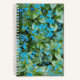 Spiral bound notebook that features a photo image of variegated Brunnera plant leaves and its little, blue flowers. A lovely, floral design! Perfect for use as a journal! Select your notebook style and wire color.