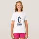 Girls' T-Shirt with an illustration of a little blue penguin, also known as little penguin or fairy penguin; a cartoon of a small penguin from New Zealand. Witch customisable text template for a name or custom text