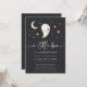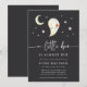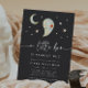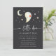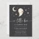 Celebrate a fall baby shower with ghostly charm using this dark-themed Halloween invitation from Redwood & Vine Design Co. Featuring a smiling watercolor ghost, crescent moon, stars, and soft hand lettering, this design blends spooky with sweet. The rich charcoal background adds dramatic contrast, perfect for an October or Halloween baby shower. Customise with your shower details to make it your own.