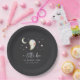 These Halloween baby shower plates from Redwood & Vine Design Co. feature a dark, moody backdrop with a sweet watercolor ghost, crescent moon, and scattered stars. The phrase “a little boo is almost due” adds the perfect playful touch for celebrating an autumn arrival. Ideal for serving cake, snacks, or treats at your spooky-chic baby shower.