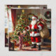 Little Boy Giving Santa a Gift Christmas Holiday Card
