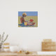 Little boy playing in the sand with a shovel poster