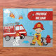 Have a little boy who dreams of being a fireman? This jigsaw puzzle is perfect! Puzzle has a young boy wearing a fireman's hat and holding a hose spraying water. There's also a firefighter Dalmatian dog, a firetruck, a fire axe and a fire hydrant. Personalize the puzzle with your son's first name and initial monogram.