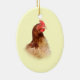 A ceramic ornament with a strand of gold thread that makes it easy to display which features a colourful vignetted portrait of a brown hen from Manor Hill's "Little Brown Hen" gift collection. Add a personal message to both sides of this ornament.
