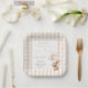 These charming baby shower paper plates feature a cute baby bunny holding balloons and a gingham background, and can be personalised with your name and special date. Designed by Thisisnotme©