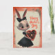 A sweet and stylish Mother’s Day card featuring an elegant baby bunny dressed in her fanciest outfit, proudly holding a heart-shaped box of chocolates for Mama. Perfect for moms who adore adorable art with a touch of whimsy. Soft painterly textures and irresistible bun charm make this a gift-worthy keepsake for any mother figure.