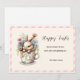 A charming watercolor illustration of a soft, fluffy bunny resting inside a delicate floral teacup, surrounded by blooming flowers and fresh green leaves. The pastel colors and gentle details create a warm, dreamy atmosphere, perfect for spring, Easter, or cute nursery-themed designs.