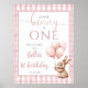 This charming 1st birthday welcome sign features a cute baby bunny holding balloons, and a pink gingham background. Designed by Thisisnotme©