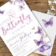 Celebrate the upcoming arrival of a little one with this charming "Little Butterfly Is On Her Way" baby shower invitation. Featuring delicate watercolor flowers in shades of purple and pink, whimsical butterflies in soft hues of lavender and gold, and elegant, playful fonts, this invitation is perfect for a baby girl shower. With an enchanting and gentle design, it sets a sweet, welcoming tone for friends and family to gather in anticipation of the baby’s arrival. Add your event details and bring a touch of magic to your celebration with this delightful invitation!