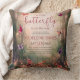Celebrate a precious arrival with this stunning customized "Little Butterfly" baby shower throw pillow. The elegant design features a soft watercolor wash of pink and purple, framed by lush floral and hydrangea arrangements, and beautiful flying watercolor butterflies in shades of pink and lavender. The center features the text "A LITTLE Butterfly ♡" in an elegant cursive script with a cute heart loop. This specific pillow is customized with the text: "Madeleine Davies / THURSDAY | JUNE 11th | 3:00 PM / YOUR PLACE NAME / 89 JASMINE DRIVE / RSVP to Wafaa at 123467 by May 10th / Registered at Target". This personalized pillow makes a perfect, unique baby shower gift, a beautiful decoration for the gift table or nursery chair, and a cherished keepsake for the parents-to-be. Easy to customize with your own text and photos. Made of durable, soft fabric. Print is double-sided by default.