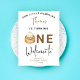 Cute birthday invitation card featuring watercolor illustration of kawaii Chinese dumpling on wood plate. The text says "OUR LITTLE DUMPLING".