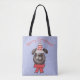 Little Christmas dog wearing knitted cap and scarf Tote Bag