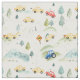 A whimsical repeating pattern featuring yellow cars, a red car, and a blue tractor traveling along a curvy country road surrounded by watercolor hills, trees, and gentle road signs—creating a soft, storybook world perfect for kiddos who love vehicles and cozy outdoor adventures.